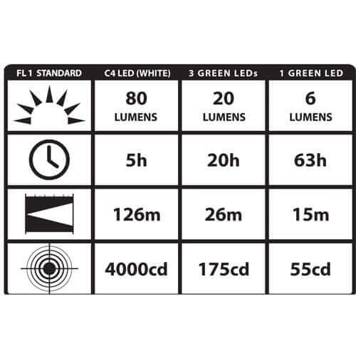 Trident HP LED CAMO er með einni sterkri Power LED og þremur LED sem eru grænar og er það mjög gott til að halda nætursjóninni. Þetta er ljós fyrir veiðimenn sem gera miklar kröfur um gott ljós.