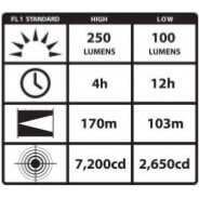 Vantage 180 er gert úr mjög sterku nylon harðplasti og er gert til að endast. Kemur með nýrri gerð af díóðu LED C4 250 Lumens sem er óbrjótanlegt, ljós fyrir kröfuharða. ljósið vatnshelt IP67