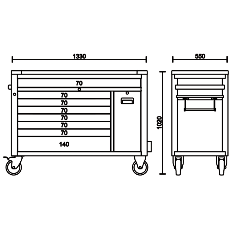 • 1 skúffa með 140 mm hæð